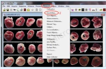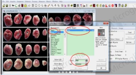 6.選擇每一切片的尾側面用病理圖文分析系統(tǒng)進行圖像分析,測量每片的梗死面積和總面積。(每層梗死體積為該層梗死面積和層厚的乘積,各層的梗死體積之和即為總的梗死體積。