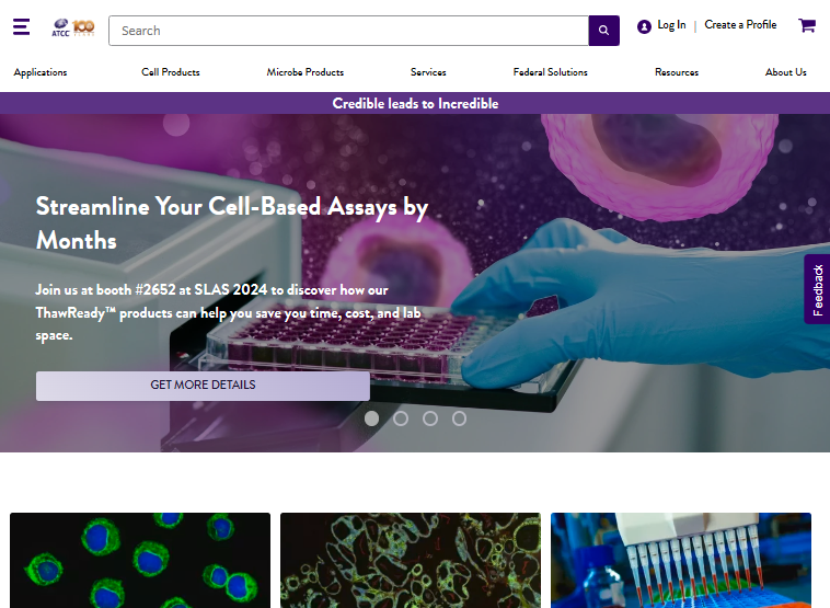 ATCC是美國菌種保藏中心(American type culture collection)的簡寫,成立于1925年,是世界上最大的生物資源中心。目前,ATCC可以提供以下類別生物標準品:細胞株(3000多種);菌株(15000多種);動植物病毒株(2500多種)以及重組物質等。ATCC具有豐富的細胞培養(yǎng)經驗,官方網站中可以查詢到細胞的具體來源、培養(yǎng)體系和注意事項等,此外還提供專業(yè)的細胞培養(yǎng)指南供細胞培養(yǎng)者學習。