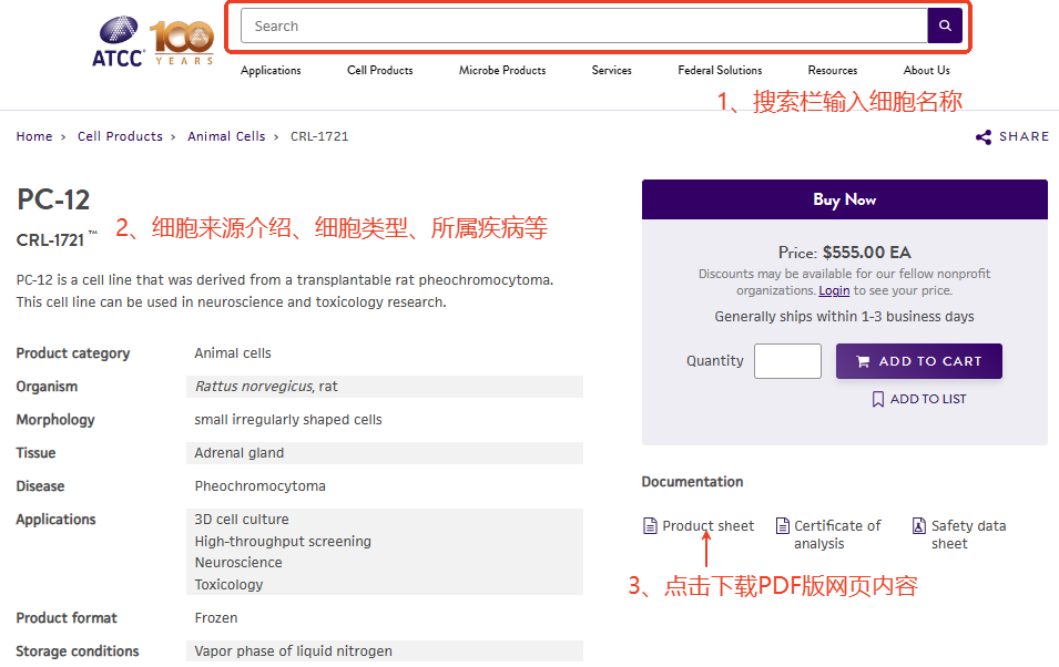 ATCC是一個非營利性的全球生物資源中心和標準組織,也是認證細胞系和微生物的領先開發(fā)商和供應商,擁有世界上最大、最廣泛的人類和動物研究細胞系產品目錄,包括原代細胞、永生化細胞系、干細胞、免疫細胞等。細胞系數據中包含了詳細的細胞表征信息,如形態(tài)學、分子標記、基因表達譜、增殖能力、傳代歷史、細胞標準形態(tài)圖等,無需注冊登入即可查詢和下載說明書。