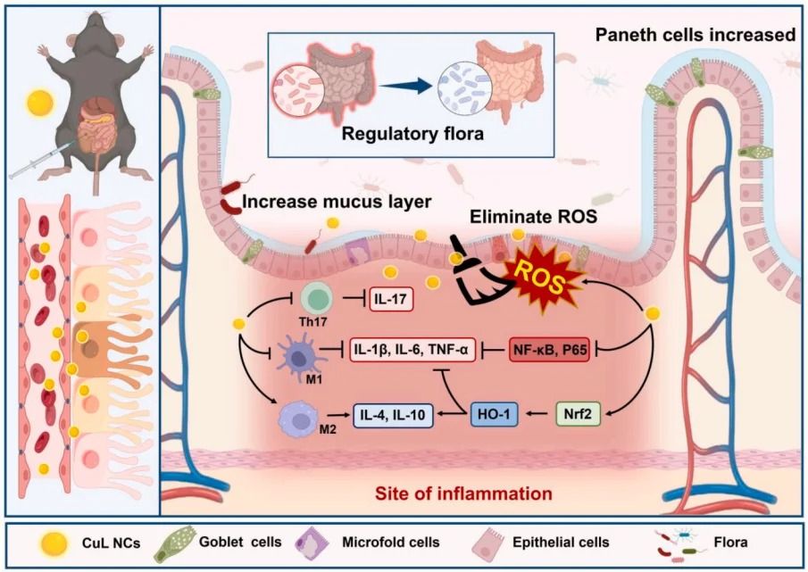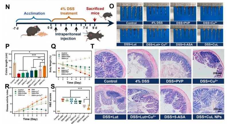 4.動(dòng)物模型:在典型的IBD小鼠模型(如潰瘍性結(jié)腸炎和克羅恩?。┲序?yàn)證CuL NCs的預(yù)防和治療效果。