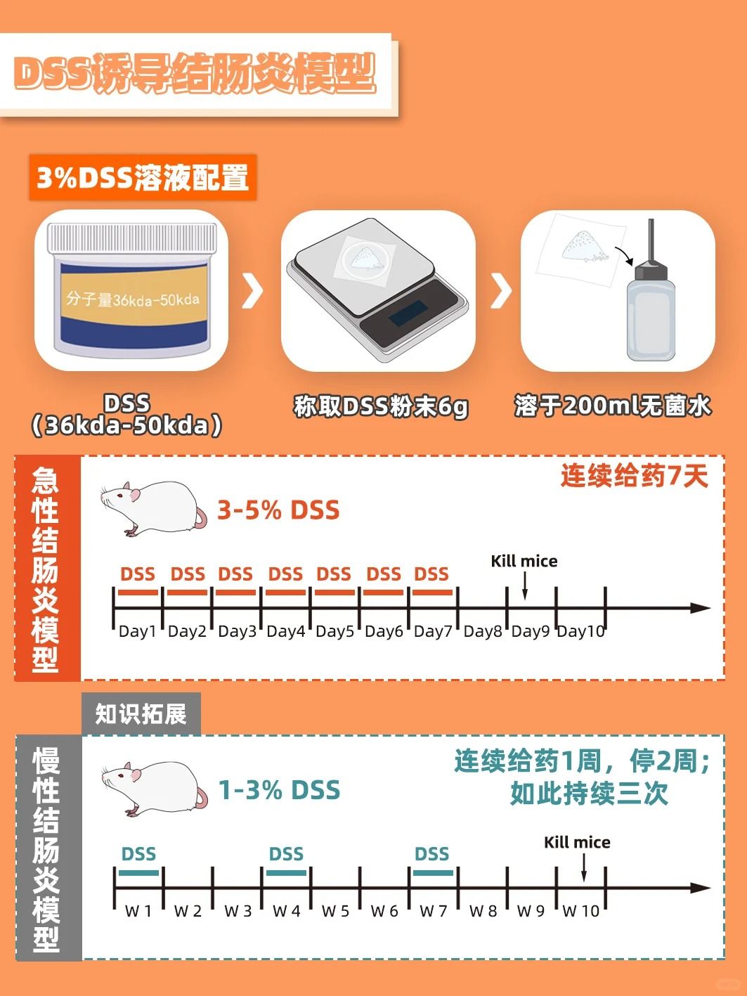 以DSS誘導(dǎo)的小鼠腸炎模型為例,具體實(shí)踐步驟如下: