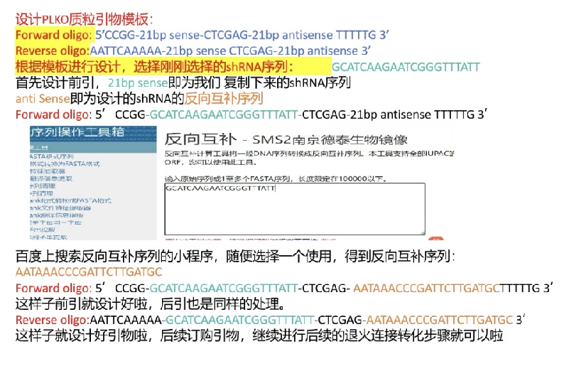 shRNA引物設計步驟:(載體為pPLKO.1為例)