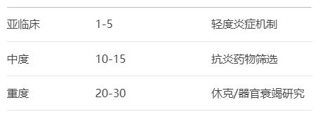 嚴(yán)重程度LPS劑量(mg/kg)適用研究