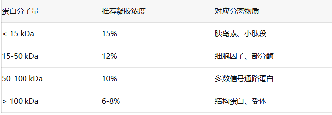 1.根據(jù)自己的目標(biāo)分子選擇對(duì)應(yīng)的濃度膠,保證蛋白電泳過程中順利下沉及分開,不懂時(shí)可以咨詢一下師兄師姐,特別是與他人蛋白kd數(shù)差距甚遠(yuǎn)時(shí)。