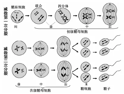 最后就是減數(shù)分裂。減數(shù)分裂是一種特殊方式的有絲分裂,它與有性生殖細胞的形成有關(guān)。它是進行有性生殖的生物,在原始的生殖細胞發(fā)展為成熟的生殖細胞(精子或卵細胞)的過程中,要經(jīng)過減數(shù)分裂。在整個減數(shù)分裂過程中,染色體只復制一次,而細胞連續(xù)分裂兩次。減數(shù)分裂的結(jié)果是,新產(chǎn)生的生殖細胞中的染色體數(shù)目,比新原始的生殖細胞的減少一半。例如,人的精原細胞和卵原細胞中各有46條染色體,而經(jīng)過減數(shù)分裂形成的精子和卵細胞中,只含有23條染色體。
