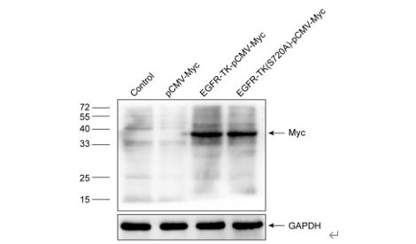 分組:Control、pCMV-Myc、EGFR-TK-pCMV-Myc、EGFR-TK(S720A)-pCMV-Myc