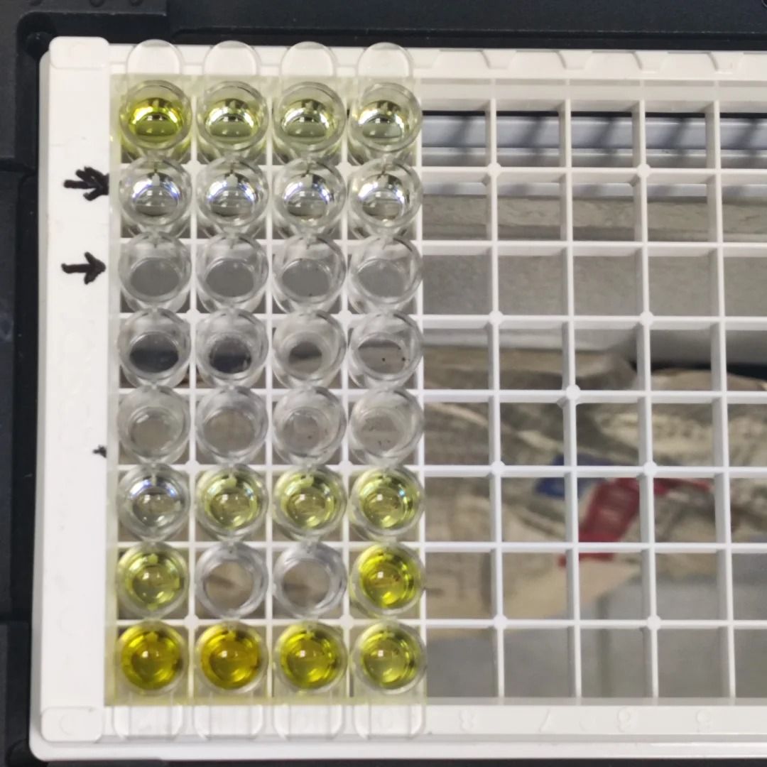②顏色反應與結果判定:酶結合物與相應的抗原或抗體結合后,通過加入特定的底物,酶催化底物產生顏色反應。顏色反應的深淺與樣品中相應抗原或抗體的量成正比例,因此可以通過觀察顏色反應的程度來判斷樣品中抗原或抗體的濃度。