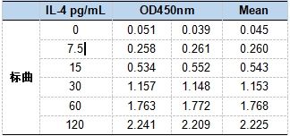 標準曲線結果顯示,本次IL-4檢測結果可信。