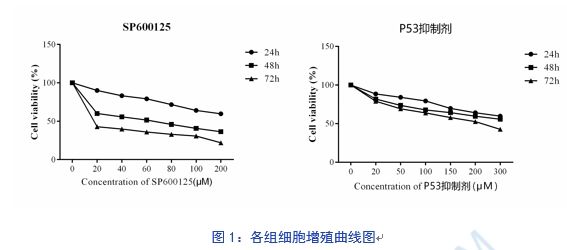 表1:CCK8法檢測(cè)各組細(xì)胞OD值(450nm)及相對(duì)存活率-SP600125