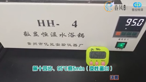 5、4℃,14000g離心15min,立即將上清轉(zhuǎn)移到一個(gè)新的離心管中。