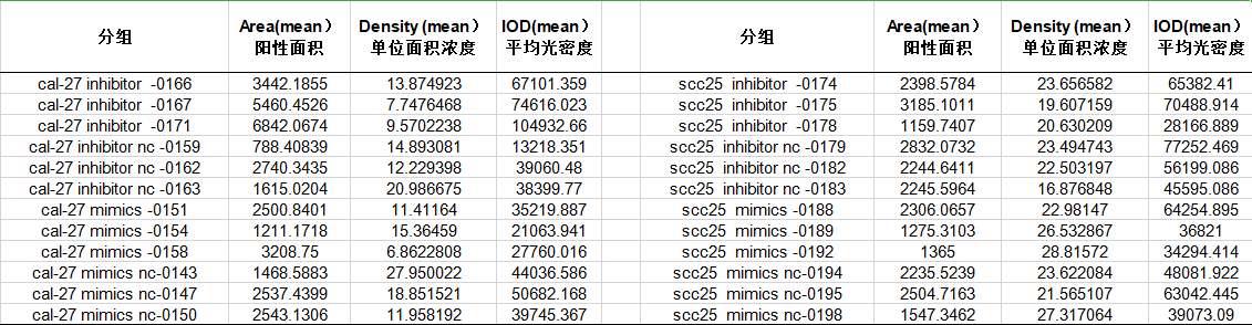 注:組化定量分析采用image pro plus 6.0軟件,IOD值為圖片上各點光密度值的累加,此值與目標(biāo)物質(zhì)的總量成正比;IOD值除以目標(biāo)分布區(qū)域的面積,得到平均density,此值反映了目標(biāo)物質(zhì)的單位面積濃度。對樣品照片進(jìn)行數(shù)字圖像分析比較時,就是比較他們之間的平均光密度值的大小。