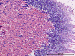 樣本中細(xì)胞核被蘇木精染成藍(lán)色;細(xì)胞質(zhì)被伊紅染成深淺不同的粉紅色至深紅色。