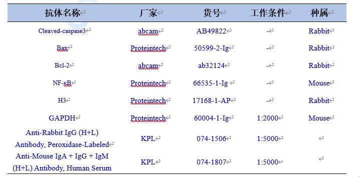 指標(biāo):Cleaved-caspase3、Bax、Bcl-2、NF-κB