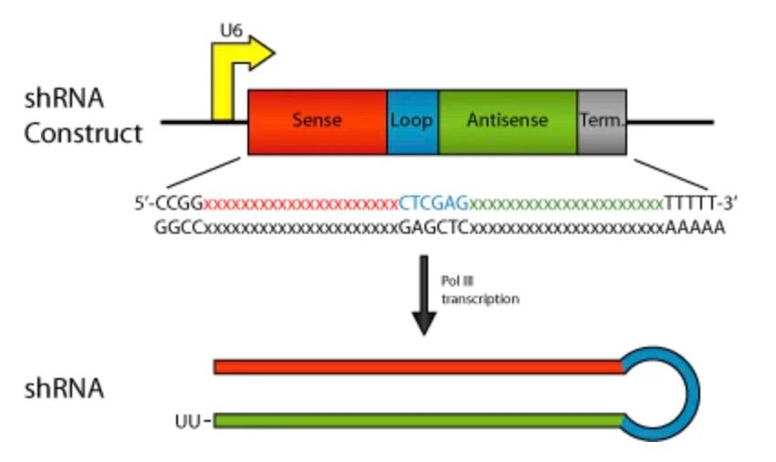shRNA,即短發(fā)夾RNA,是一種人工合成的RNA分子,其獨特之處在于能夠形成特定的發(fā)夾結(jié)構(gòu),這一結(jié)構(gòu)使得shRNA能夠特異性地結(jié)合并沉默目標(biāo)基因的mRNA,從而阻斷基因的表達。相比傳統(tǒng)的反義RNA或RNAi技術(shù),shRNA具有更高的穩(wěn)定性和轉(zhuǎn)染效率,能夠在細(xì)胞內(nèi)持續(xù)發(fā)揮作用,成為基因功能研究和疾病治療中的強大工具。