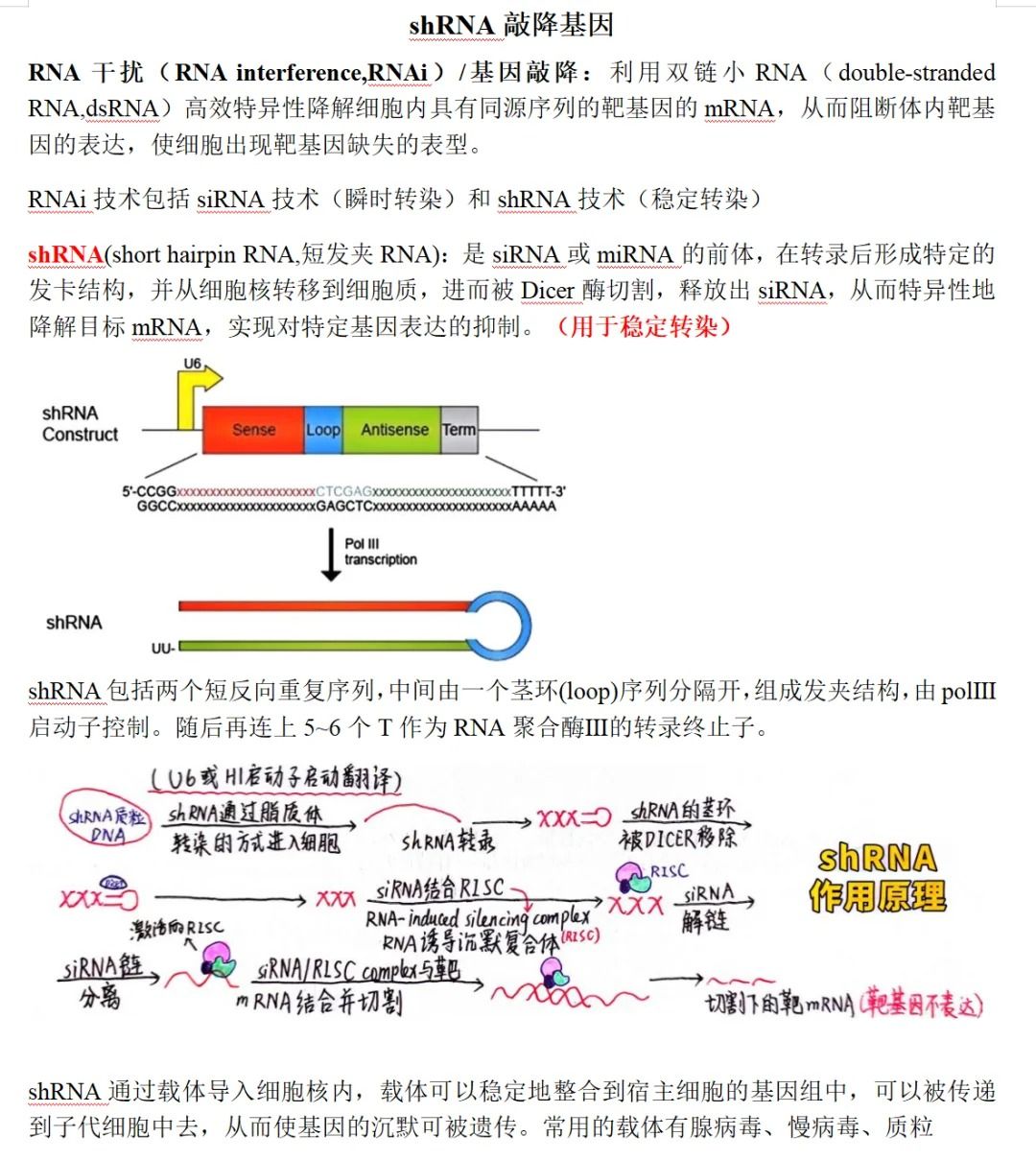 ①進(jìn)行功能實驗以驗證shRNA對細(xì)胞表型、生理狀態(tài)等的影響。