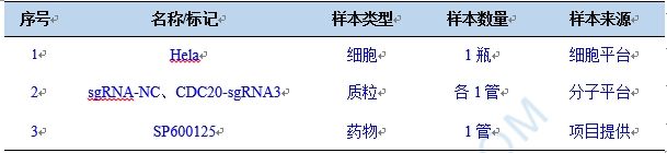 備注:包括干預細胞用的相關試劑均按實驗樣品登記,每行登記一個或一組獨立樣品