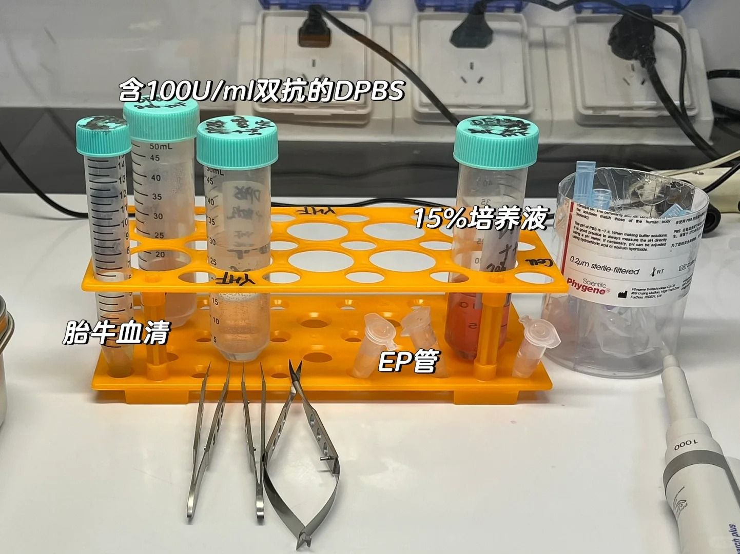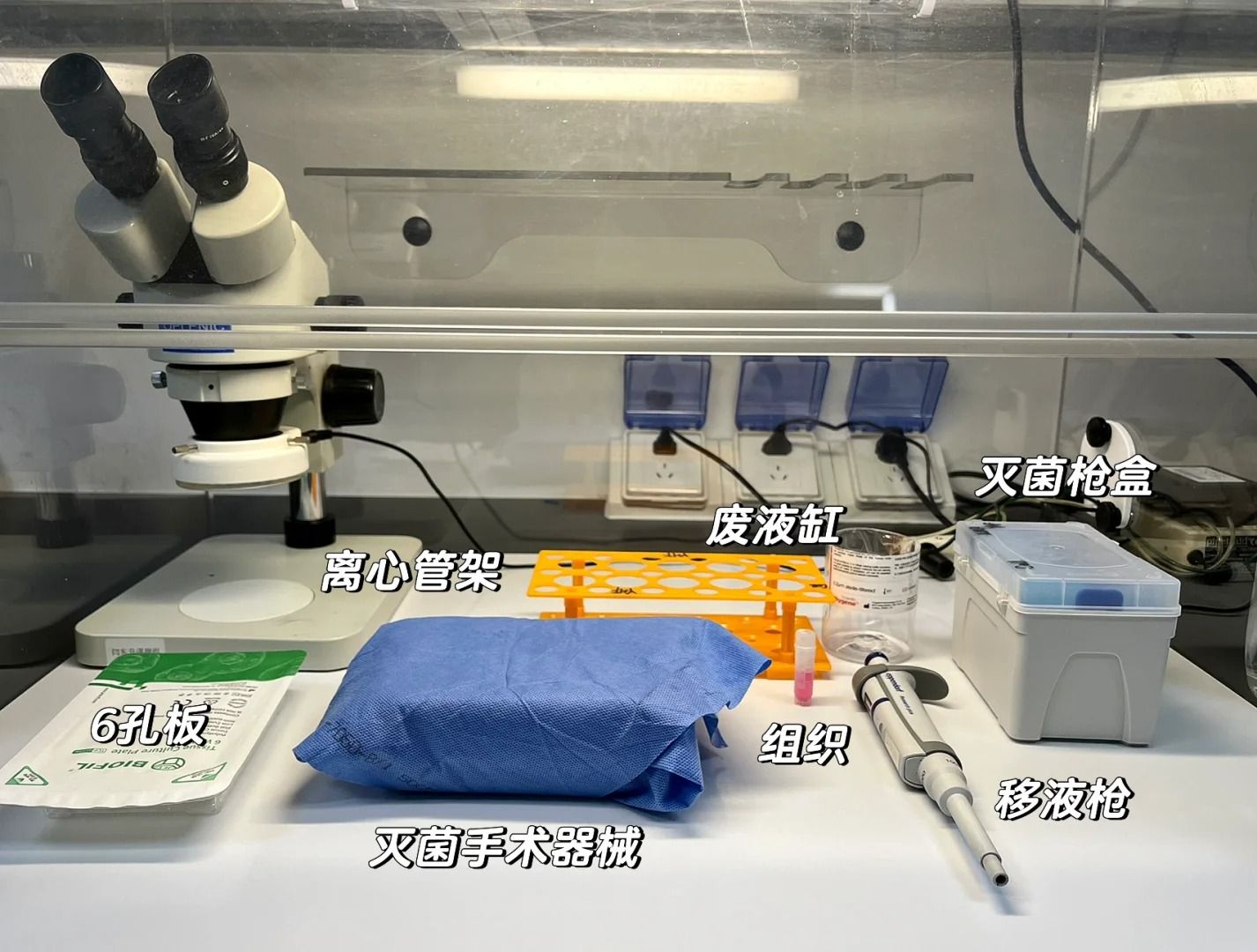 一次性注射器、手術(shù)器械(如眼科剪、眼科鑷)、離心管、細胞培養(yǎng)皿、移液槍及槍頭等,并確保所有金屬器械經(jīng)過高壓滅菌,離心管輻照消毒。