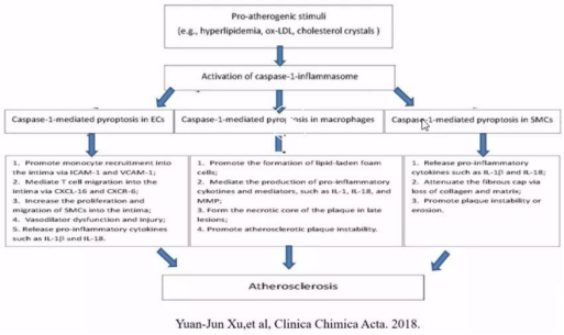 1、在動脈粥樣硬化的發(fā)展中,炎癥被認(rèn)為是啟動和驅(qū)動動脈粥樣硬化的主要因素。在高血脂,氧化修飾的低密度脂蛋白等幾次下,激活Caspase-1,介導(dǎo)血管內(nèi)皮細(xì)胞,巨噬細(xì)胞,血管平滑肌細(xì)胞的焦亡與炎癥反應(yīng),導(dǎo)致血管擴張功能障礙、壞死中心的形成,粥樣硬化斑塊的穩(wěn)定,最終造成動脈粥樣硬化。
