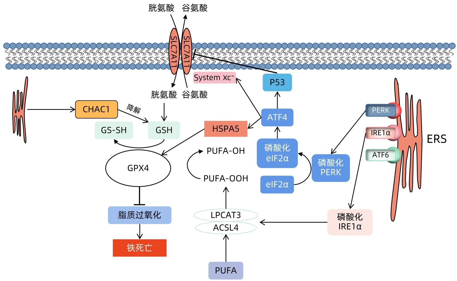 鐵死亡的主要機制涉及二價鐵或酯氧合酶的作用,催化細胞膜上高表達的不飽和脂肪酸發(fā)生脂質(zhì)過氧化,從而誘導(dǎo)細胞死亡。