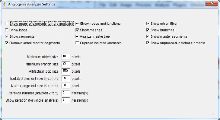 2. 打開Angiogenesis Analyzer文本文件,即可見Angiogenesis Analyzer分析界面: