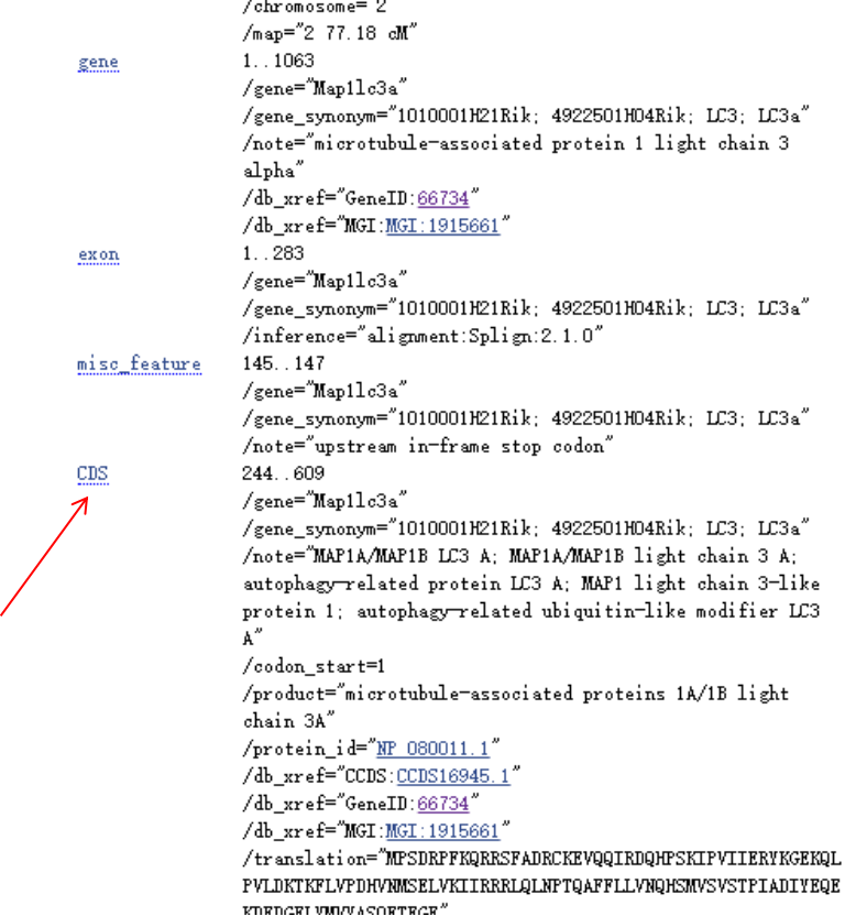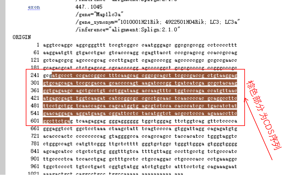 下翻可見其CDS序列,點擊CDS,CDS序列被標記,可復(fù)制CDS序列。